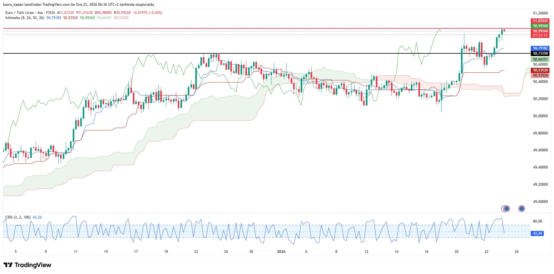 Cuma sabahı döviz piyasalarında yukarı yönlü hareket dikkat çekti. Euro/TL, günün erken saatlerinde kritik eşiği aşarak yatırımcıların odağına yerleşti. Saat 07.35 itibarıyla 51,03 seviyesine yükselen euro, Türk lirası karşısında tüm zamanların en yüksek seviyesini görmüş oldu.